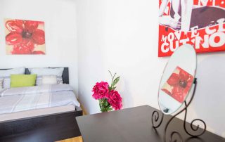 U dnevnoj sobi se nalazi i kutak sa radnim stolom koji je idealan za poslovne putnike jer im omogućuje da se izoluju i obave sve svoje poslovne obaveze pre odlaska u obilazak grada. Apartman je opremljen najsavremenijim uređajima koji će boravak u gradu učiniti još lakšim i jednostavnijim.
